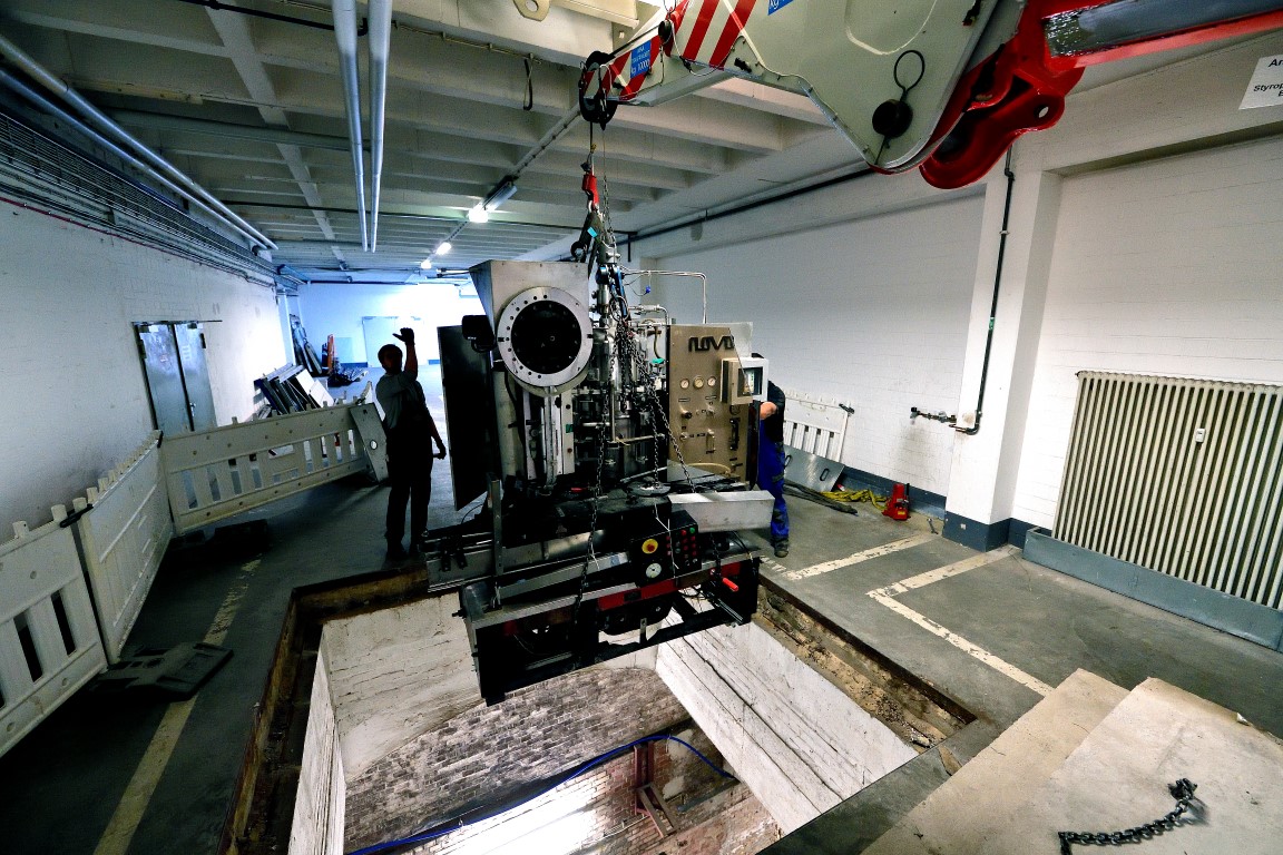 Was macht man, wenn die Etikettiermaschine und die Abfüllanlage nicht in den Fahrstuhl passen?
